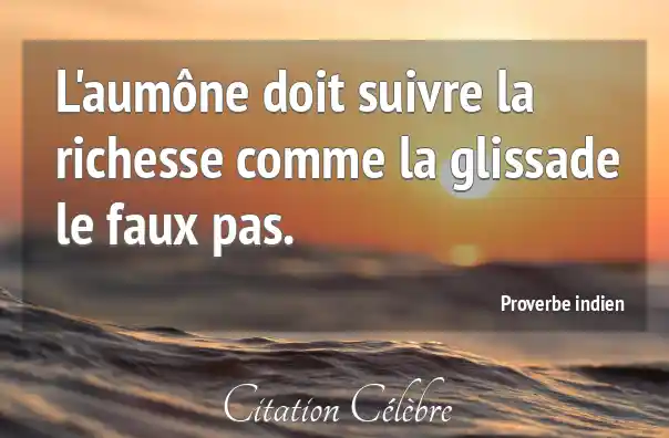 L'aumône doit suivre la richesse comme la glissade le faux pas.
