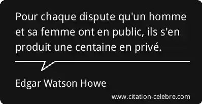 Pour chaque dispute qu'un homme et sa femme ont en public, ils s'en produit une centaine en privé.