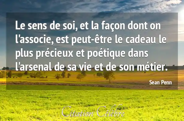 Le sens de soi, et la façon dont on l'associe, est peut-être le cadeau le plus précieux et poétique dans l'arsenal de sa vie et de son métier.