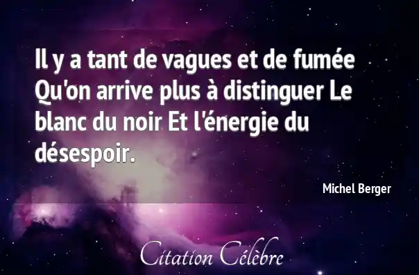 Il y a tant de vagues et de fumée Qu'on arrive plus à distinguer Le blanc du noir Et l'énergie du désespoir.