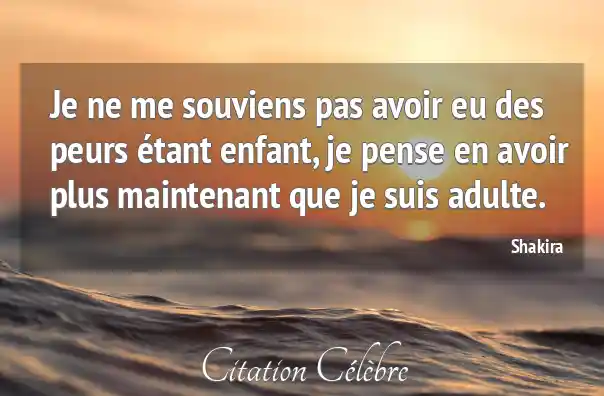 Je ne me souviens pas avoir eu des peurs étant enfant, je pense en avoir plus maintenant que je suis adulte.