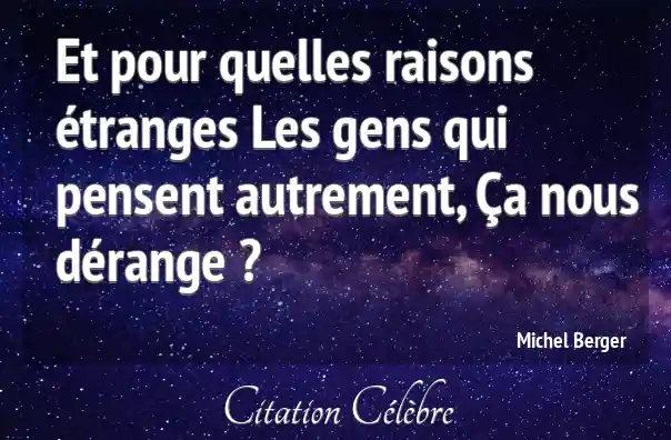Et pour quelles raisons étranges Les gens qui pensent autrement, Ça nous dérange ?