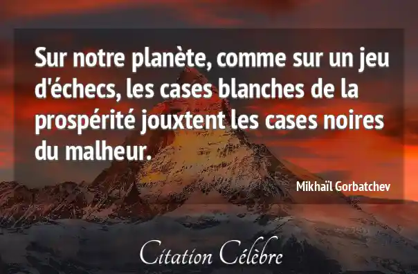 Sur notre planète, comme sur un jeu d'échecs, les cases blanches de la prospérité jouxtent les cases noires du malheur.