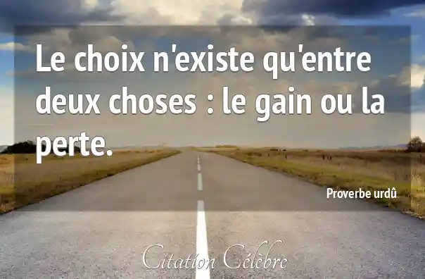 Le choix n'existe qu'entre deux choses : le gain ou la perte.