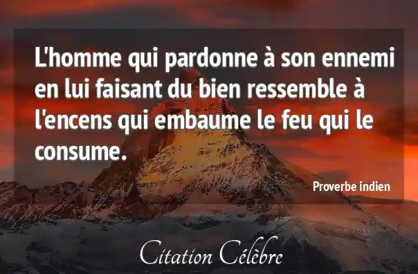 L'homme qui pardonne à son ennemi en lui faisant du bien ressemble à l'encens qui embaume le feu qui le consume.