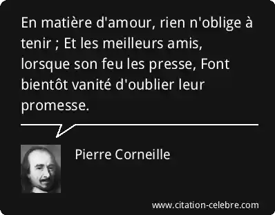 En matière d'amour, rien n'oblige à tenir ; Et les meilleurs amis, lorsque son feu les presse, Font bientôt vanité d'oublier leur promesse.