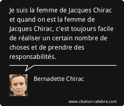 Je suis la femme de Jacques Chirac et quand on est la femme de Jacques Chirac, c'est toujours facile de réaliser un certain nombre de choses et de prendre des responsabilités.