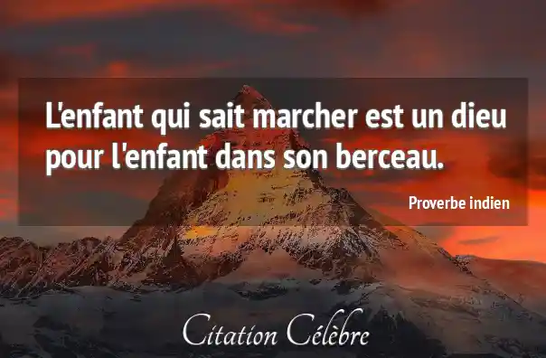 L'enfant qui sait marcher est un dieu pour l'enfant dans son berceau.