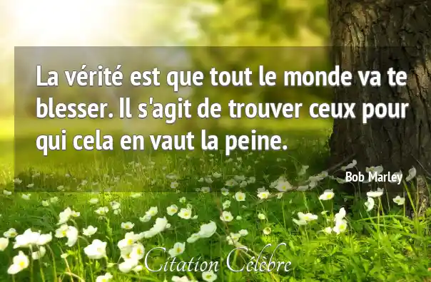 La vérité est que tout le monde va te blesser. Il s'agit de trouver ceux pour qui cela en vaut la peine.