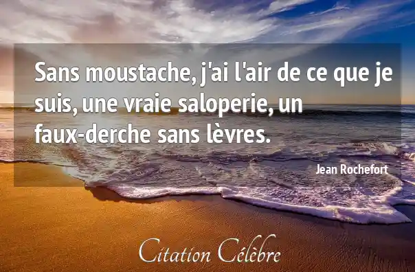 Sans moustache, j'ai l'air de ce que je suis, une vraie saloperie, un faux-derche sans lèvres.