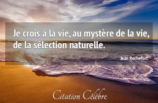 Je crois à la vie, au mystère de la vie, de la sélection naturelle.