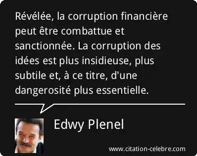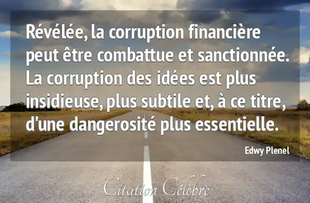 Révélée, la corruption financière peut être combattue et sanctionnée. La corruption des idées est plus insidieuse, plus subtile et, à ce titre, d'une dangerosité plus essentielle.