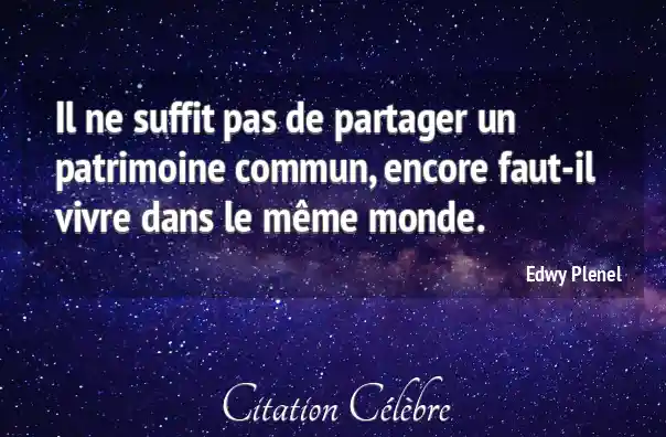 Il ne suffit pas de partager un patrimoine commun, encore faut-il vivre dans le même monde.