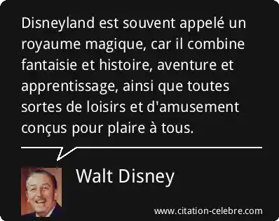 Disneyland est souvent appelé un royaume magique, car il combine fantaisie et histoire, aventure et apprentissage, ainsi que toutes sortes de loisirs et d'amusement conçus pour plaire à tous.
