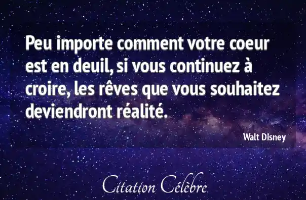 Peu importe comment votre coeur est en deuil, si vous continuez à croire, les rêves que vous souhaitez deviendront réalité.
