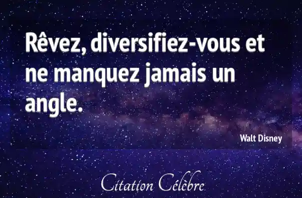 Citation Walt Disney angle : Rêvez, diversifiez-vous et ne manquez jamais un angle....
