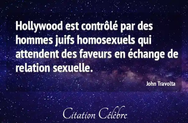 Hollywood est contrôlé par des hommes juifs homosexuels qui attendent des faveurs en échange de relation sexuelle.