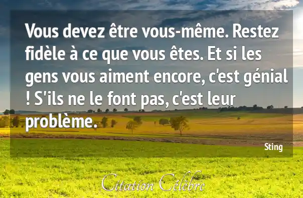 Vous devez être vous-même. Restez fidèle à ce que vous êtes. Et si les gens vous aiment encore, c'est génial ! S'ils ne le font pas, c'est leur problème.