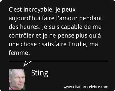C'est incroyable, je peux aujourd'hui faire l'amour pendant des heures. Je suis capable de me contrôler et je ne pense plus qu'à une chose : satisfaire Trudie, ma femme.