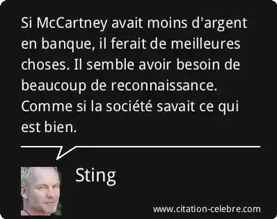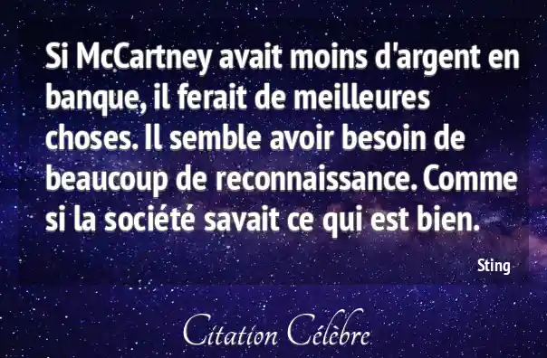 Si McCartney avait moins d'argent en banque, il ferait de meilleures choses. Il semble avoir besoin de beaucoup de reconnaissance. Comme si la société savait ce qui est bien.