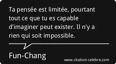 Ta pensée est limitée, pourtant tout ce que tu es capable d'imaginer peut exister. Il n'y a rien qui soit impossible.