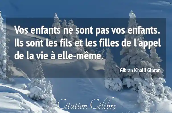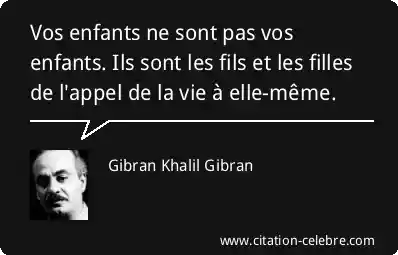 Vos enfants ne sont pas vos enfants. Ils sont les fils et les filles de l'appel de la vie à elle-même.