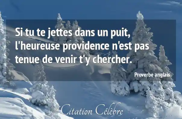 Si tu te jettes dans un puit, l'heureuse providence n'est pas tenue de venir t'y chercher.