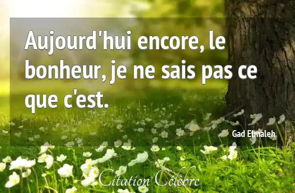 Aujourd'hui encore, le bonheur, je ne sais pas ce que c'est.