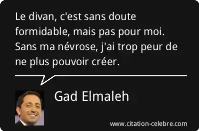 Le divan, c'est sans doute formidable, mais pas pour moi. Sans ma névrose, j'ai trop peur de ne plus pouvoir créer.