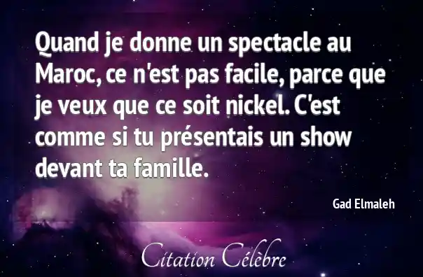 Quand je donne un spectacle au Maroc, ce n'est pas facile, parce que je veux que ce soit nickel. C'est comme si tu présentais un show devant ta famille.