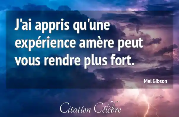 J'ai appris qu'une expérience amère peut vous rendre plus fort.
