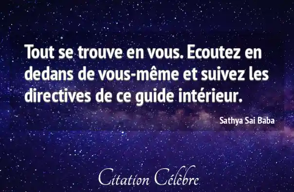 Tout se trouve en vous. Ecoutez en dedans de vous-même et suivez les directives de ce guide intérieur.