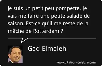 Je suis un petit peu pompette. Je vais me faire une petite salade de saison. Est-ce qu'il me reste de la mâche de Rotterdam ?