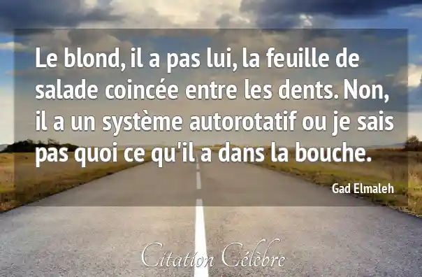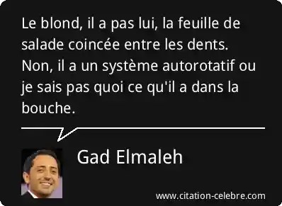 Le blond, il a pas lui, la feuille de salade coincée entre les dents. Non, il a un système autorotatif ou je sais pas quoi ce qu'il a dans la bouche.