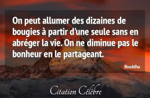 On peut allumer des dizaines de bougies à partir d'une seule sans en abréger la vie. On ne diminue pas le bonheur en le partageant.