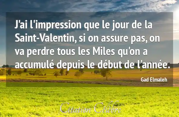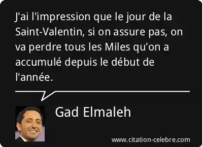 J'ai l'impression que le jour de la Saint-Valentin, si on assure pas, on va perdre tous les Miles qu'on a accumulé depuis le début de l'année.