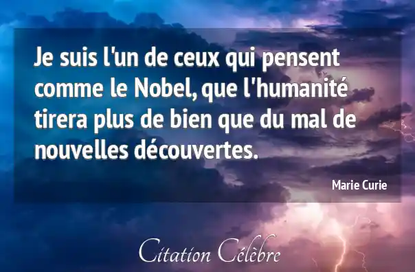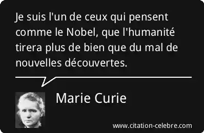 Je suis l'un de ceux qui pensent comme le Nobel, que l'humanité tirera plus de bien que du mal de nouvelles découvertes.