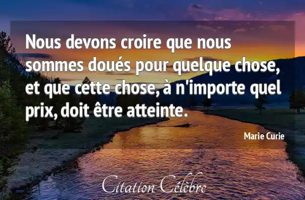 Nous devons croire que nous sommes doués pour quelque chose, et que cette chose, à n'importe quel prix, doit être atteinte.
