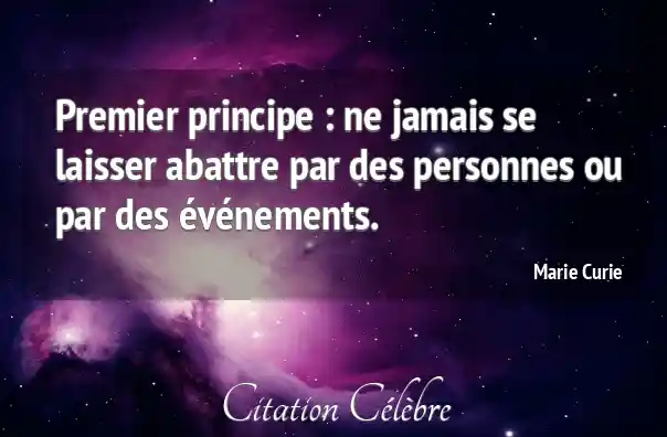 Premier principe : ne jamais se laisser abattre par des personnes ou par des événements.