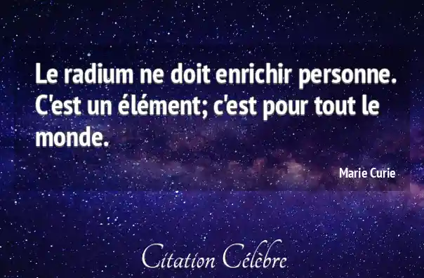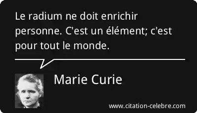 Le radium ne doit enrichir personne. C'est un élément; c'est pour tout le monde.