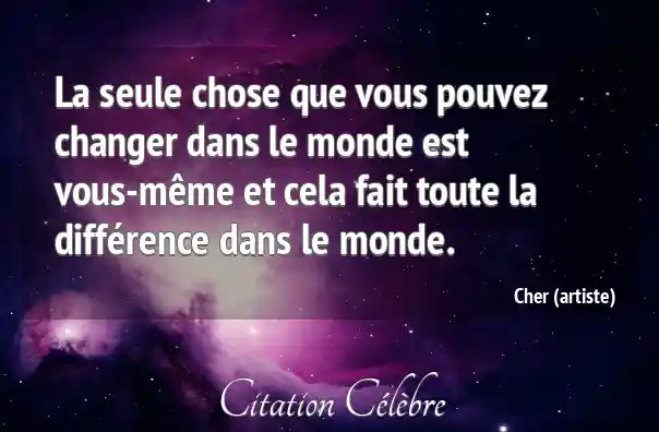 La seule chose que vous pouvez changer dans le monde est vous-même et cela fait toute la différence dans le monde.