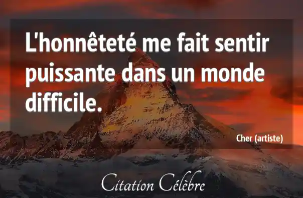 Citation de CHER (ARTISTE) sur Monde, Difficile et Honnêteté