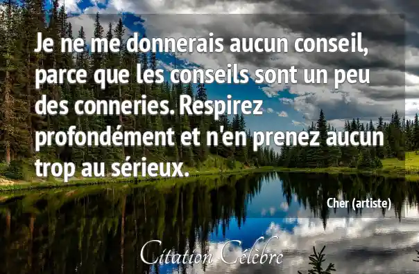 Je ne me donnerais aucun conseil, parce que les conseils sont un peu des conneries. Respirez profondément et n'en prenez aucun trop au sérieux.