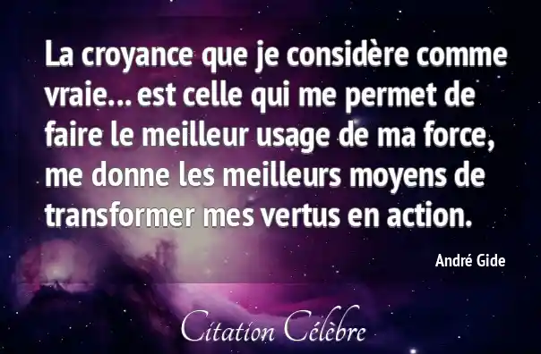 La croyance que je considère comme vraie... est celle qui me permet de faire le meilleur usage de ma force, me donne les meilleurs moyens de transformer mes vertus en action.