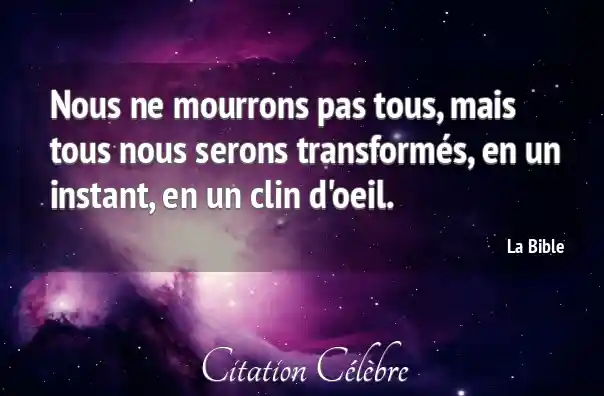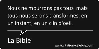 Nous ne mourrons pas tous, mais tous nous serons transformés, en un instant, en un clin d'oeil.