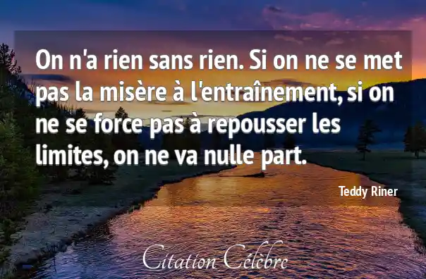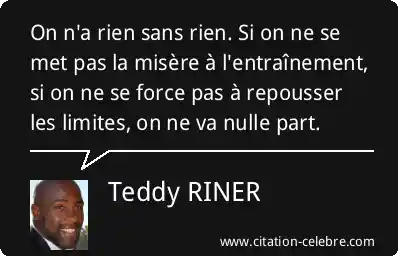 On n'a rien sans rien. Si on ne se met pas la misère à l'entraînement, si on ne se force pas à repousser les limites, on ne va nulle part.
