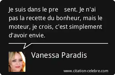 Je suis dans le présent. Je n'ai pas la recette du bonheur, mais le moteur, je crois, c'est simplement d'avoir envie.
