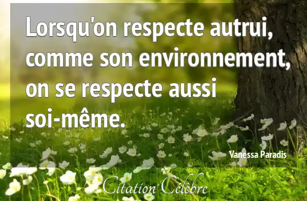 Lorsqu'on respecte autrui, comme son environnement, on se respecte aussi soi-même.