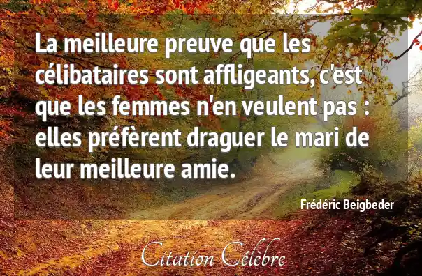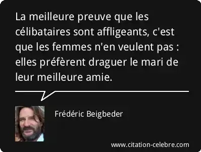 La meilleure preuve que les célibataires sont affligeants, c'est que les femmes n'en veulent pas : elles préfèrent draguer le mari de leur meilleure amie.