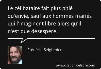 Le célibataire fait plus pitié qu'envie, sauf aux hommes mariés qui l'imaginent libre alors qu'il n'est que désespéré.